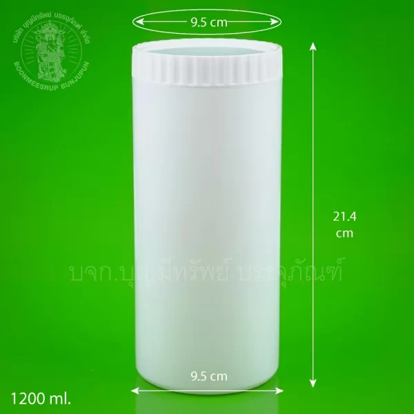 กระบอกพลาสติก สีขาวทึบ 1200 ml.