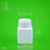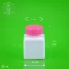 ขวดสี่เหลี่ยมจัตุรัส สีขาวทึบ ฝาสีฟ้า 30 ml.